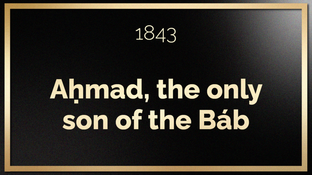 About a year after their marriage, Khadíjih Bagum gave birth to the couple’s only child, a boy named Aḥmad.
