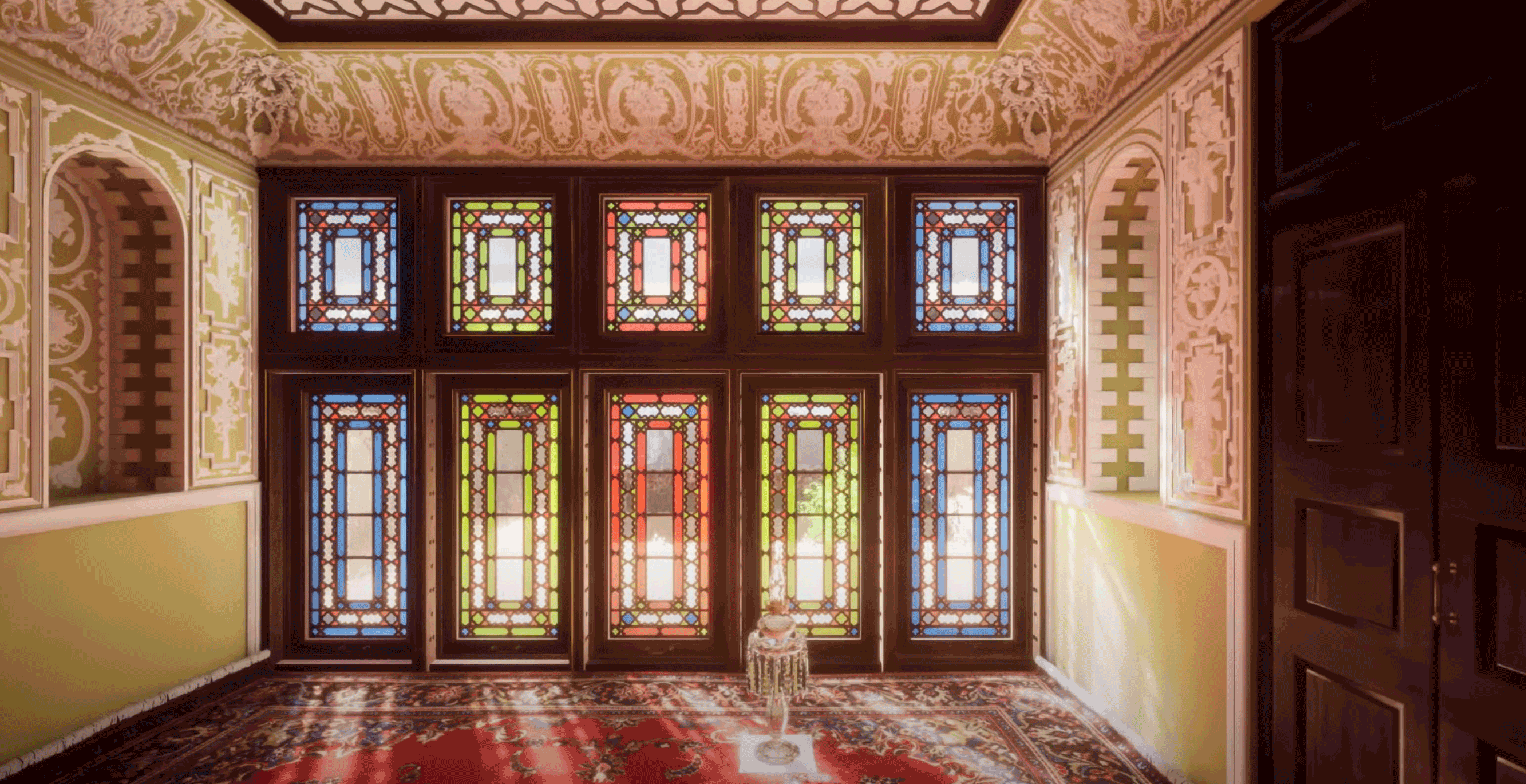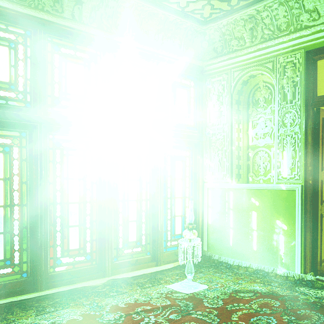 “Transfiguration”: Artistic interpretation of the thousand lights blinding Khadíjih Bagum as she sees the Báb in a state of transfiguration. © Violetta Zein Original image of the room in which the Báb would later make His Declaration: Bahá'í Media Bank, © Bahá'í International Community 2023.