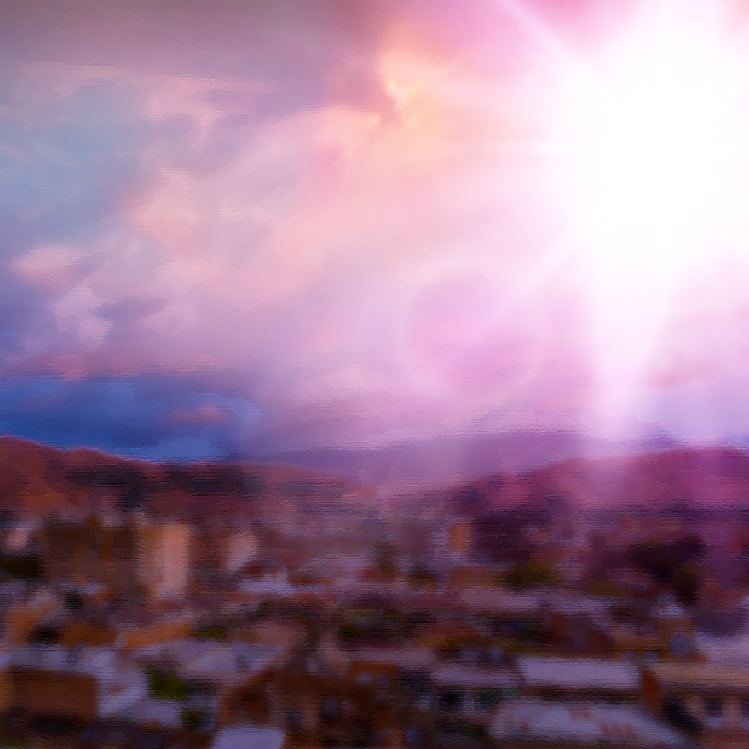 “Morning light has broken”: A digital painting of Shíráz at dawn, as Mullá Ḥusayn steps out into the city, hearing words of prophecy. © Violetta Zein