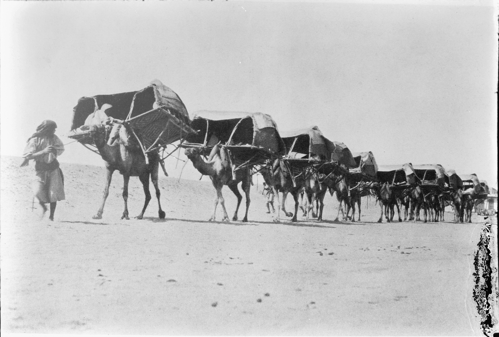 A camel caravan traveling to Mecca for the annual pilgrimage, circa 1910. Source: Wikimedia Commons.