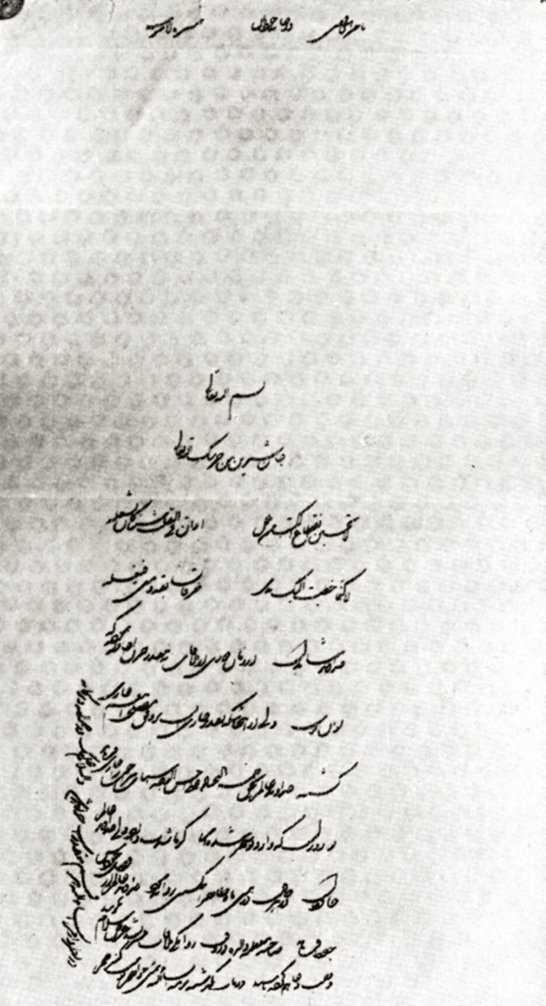 In the letter he sent the Báb, Mullá Ḥusayn included a detailed report on Bahá'u'lláh’s hugely successful teaching journey in His home district of Núr, which He had spontaneously undertaken immediately after embracing the Báb’s Faith, and enclosed a list of all those who had enrolled in the Faith and sent it to the Báb, again following His instructions and sending the letter first to Tabas, in Khurásán, where it was forwarded to Yazd, and then dispatched to the Báb in Shíráz.