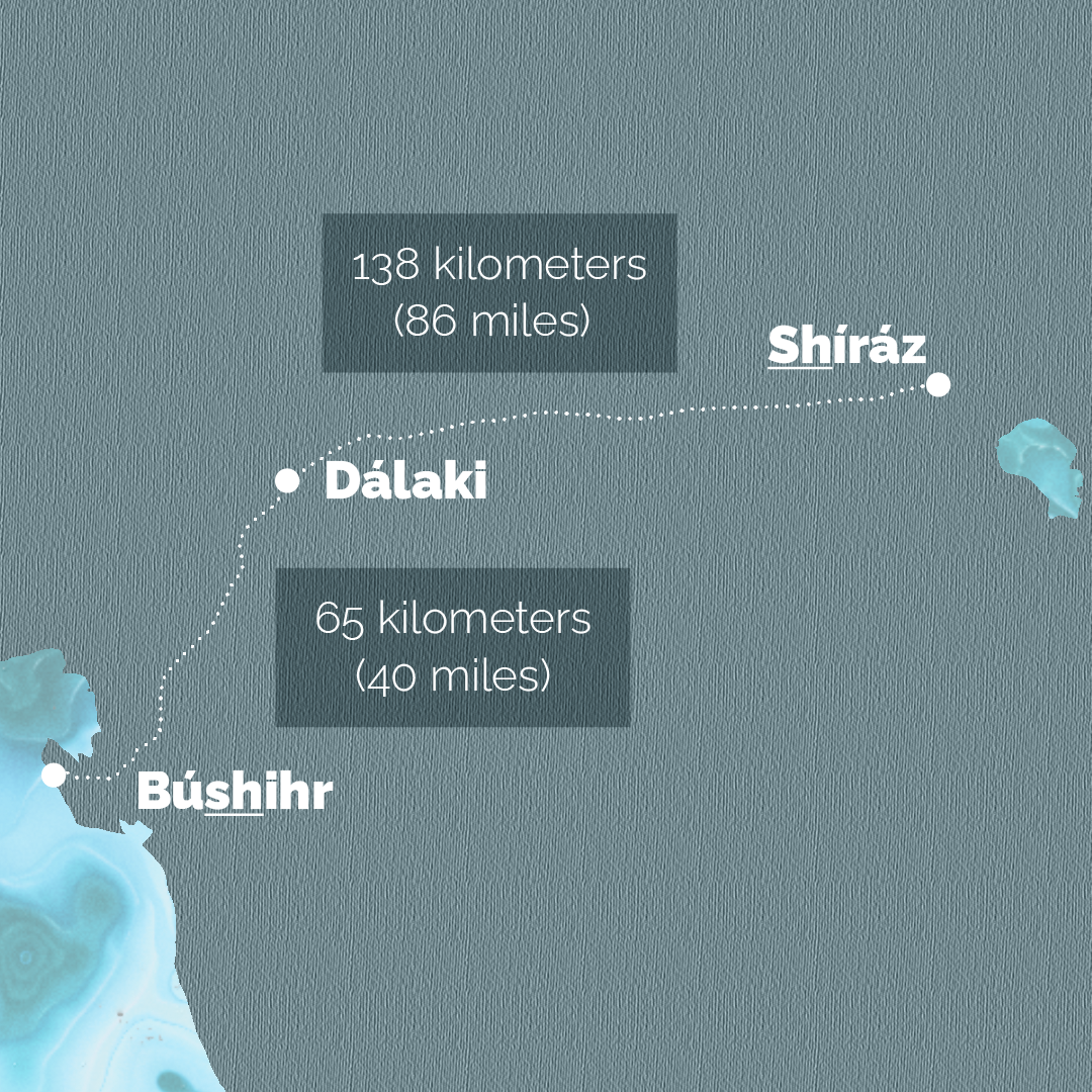 Ḥájí Mírzá Habibu’llah Afnán states that Dálakí was two-days journey from Búshihr: (Translated and annotated by Ahang Rabbani), The Genesis of the Bahá’í and Bábí Faiths in Shíráz and Fárs (Translation of Táríkh Amrí Fárs Va Shíráz), published in Numen Book Series: Studies in the History of Religions (Texts and Sources in the History of Religions) Volume 122, BRILL (2008), page 35.