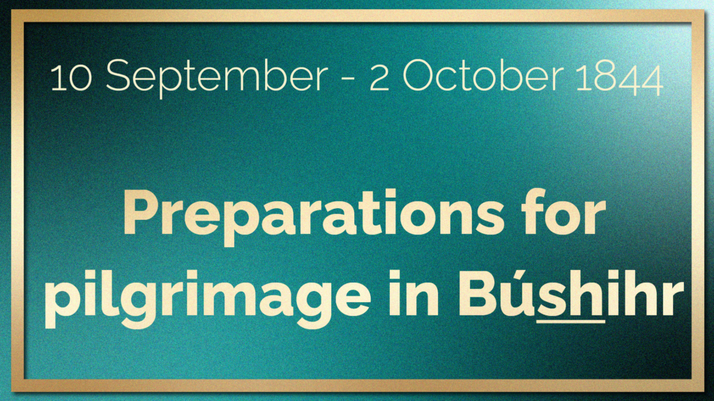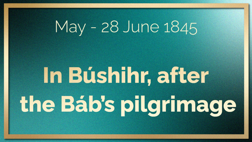 The Báb stayed in Búshihr for two weeks before sailing to Jaddih, making arrangements for His pilgrimage and waiting for Mullá Ḥusayn’s letter.