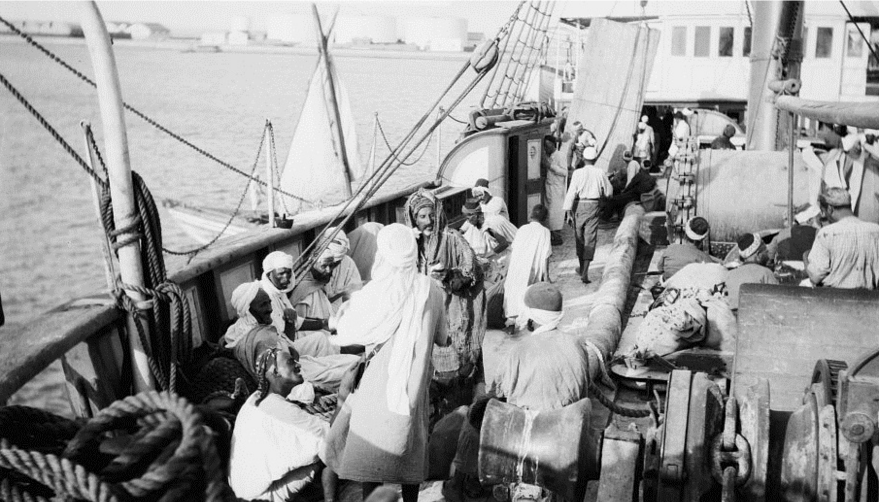Between 1900 – 1920. To Sinai via the Red Sea, Tor, and Wady Hebran. Mecca pilgrims on deck a ship. Source: G. Eric and Edith Matson Photograph Collection, Library of Congress.