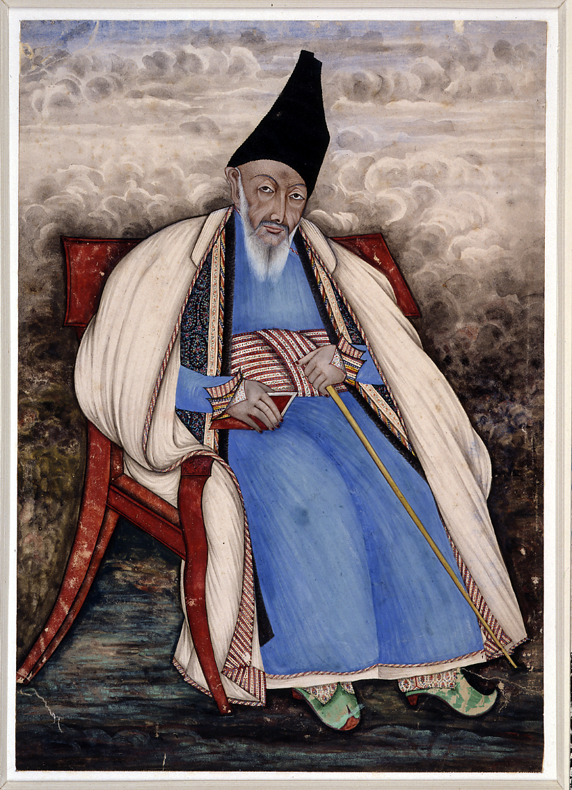Painting of Ḥájí Mírzá Áqásí, Grand Vizir (Prime Minister) to Muḥammad Sháh, and Naṣiri'd-Dín Sháh. Source: The British Museum.