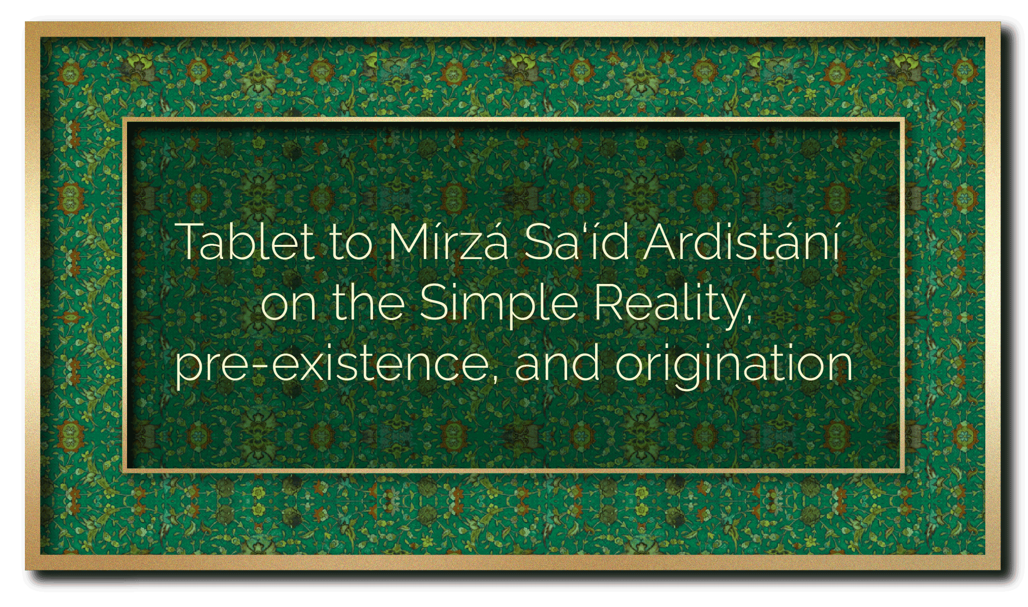 “Then there is the sixth letter of the súrih, Rá’, which referreth first to that universal Grace by which God created the Primal Will, prior to all things, by the Will’s own causation, whereby He ordained It to be the Cause of all essences. [The letter Rá’ also pointeth unto] the Grace of oneness by which God fashioned the souls of all who are embraced by His knowledge in the Book. Next, it hinteth at the universal Grace which descendeth unto the station of Destiny, that surging and bountiful sea within which all the creatures are distinguished...Finally, it indicateth the Mercy that hath encompassed all things…the all-embracing Grace which encompasseth the believer, the unbeliever, and all beings.”
