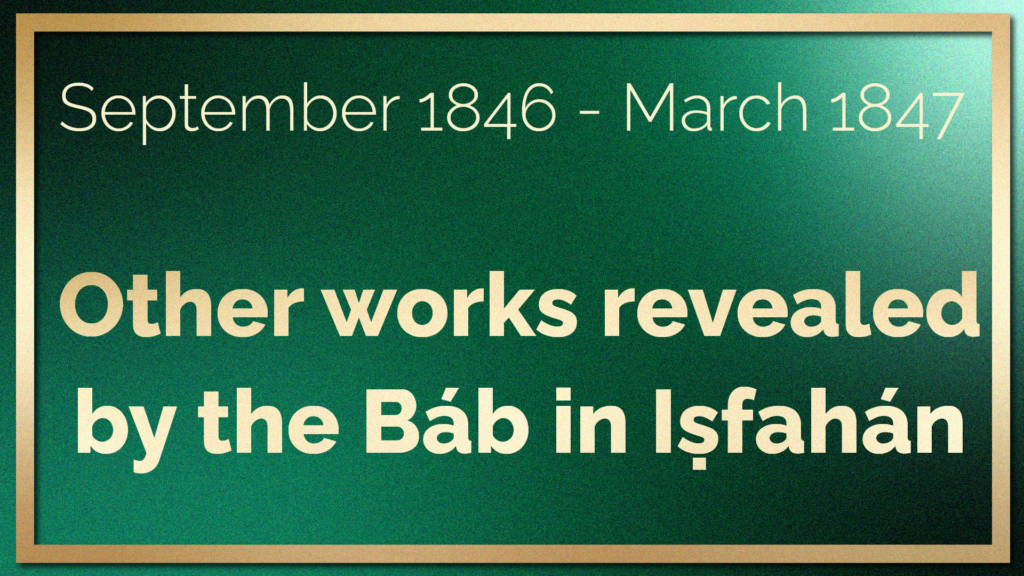 The third stage of the Báb’s Revelation followed the first philosophical stage, from 23 May 1844 and before until January 1846, and the second, philosophical stage of the Báb’s Revelation from January 1846 to April 1847.