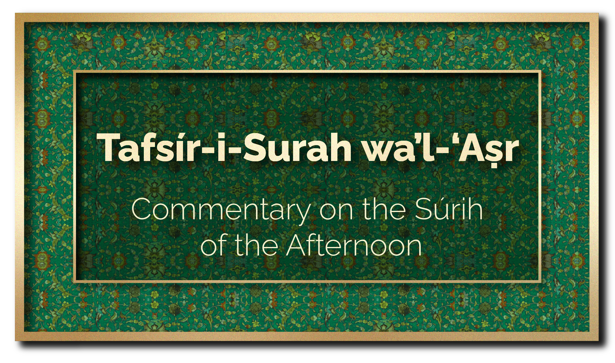 In the Súrih of V'al-‘Aṣr, the Báb interprets various parts of the short Qur’ánic súrih, and discusses many fundamental issues in religion including how to recognize spiritual truth, the nature of the human being, the meaning of faith, the nature of good deeds, and the preconditions of spiritual journey.