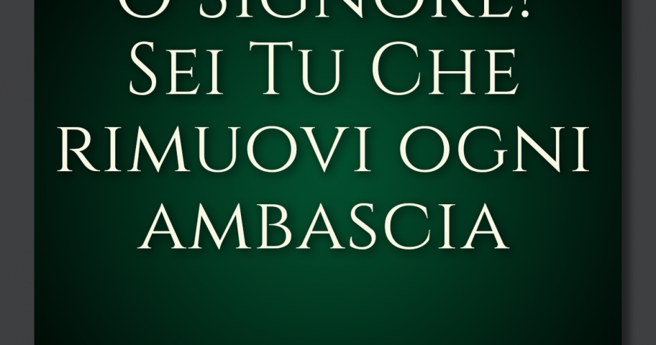 O Signore! Sei Tu Che rimuovi ogni ambascia e fughi ogni afflizione; Tu, Che bandisci ogni cordoglio; Tu, Che affranchi ogni schiavo e ogni anima redimi. O Signore! Liberami mercé la Tua clemenza e annoverami fra quei Tuoi servitori che sono giunti a salvazione.