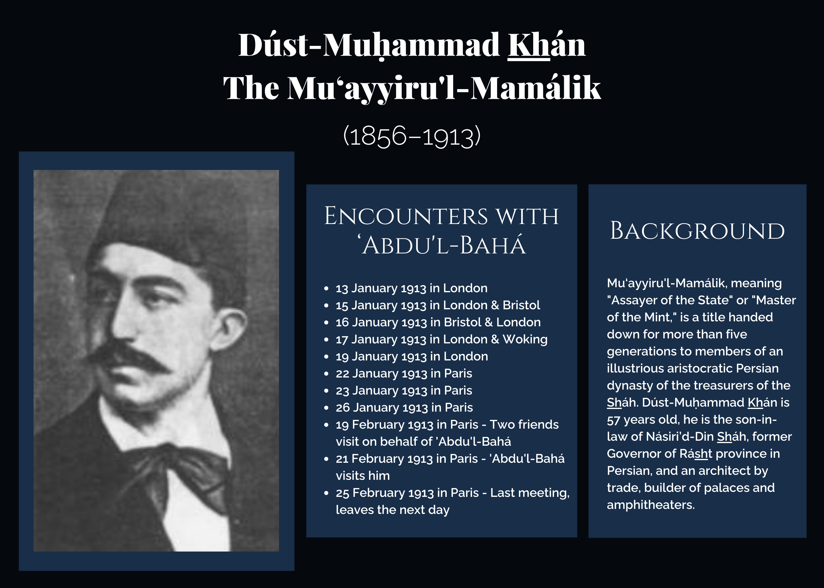 From the National Spiritual Assembly of the United Kingdom's publication "In the Footsteps of 'Abdu'l-Bahá: The Master in the British Isles 13 December 1912 – 21 January 1913."