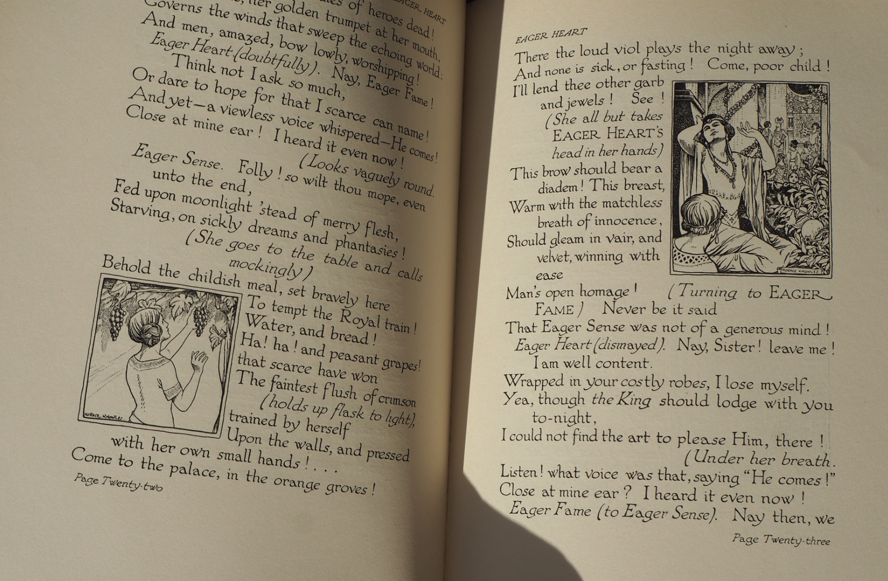 Two pages from the first edition of Eager Heart: A Christmas Mystery-Play by Alice Buckton. iBerLibrio.