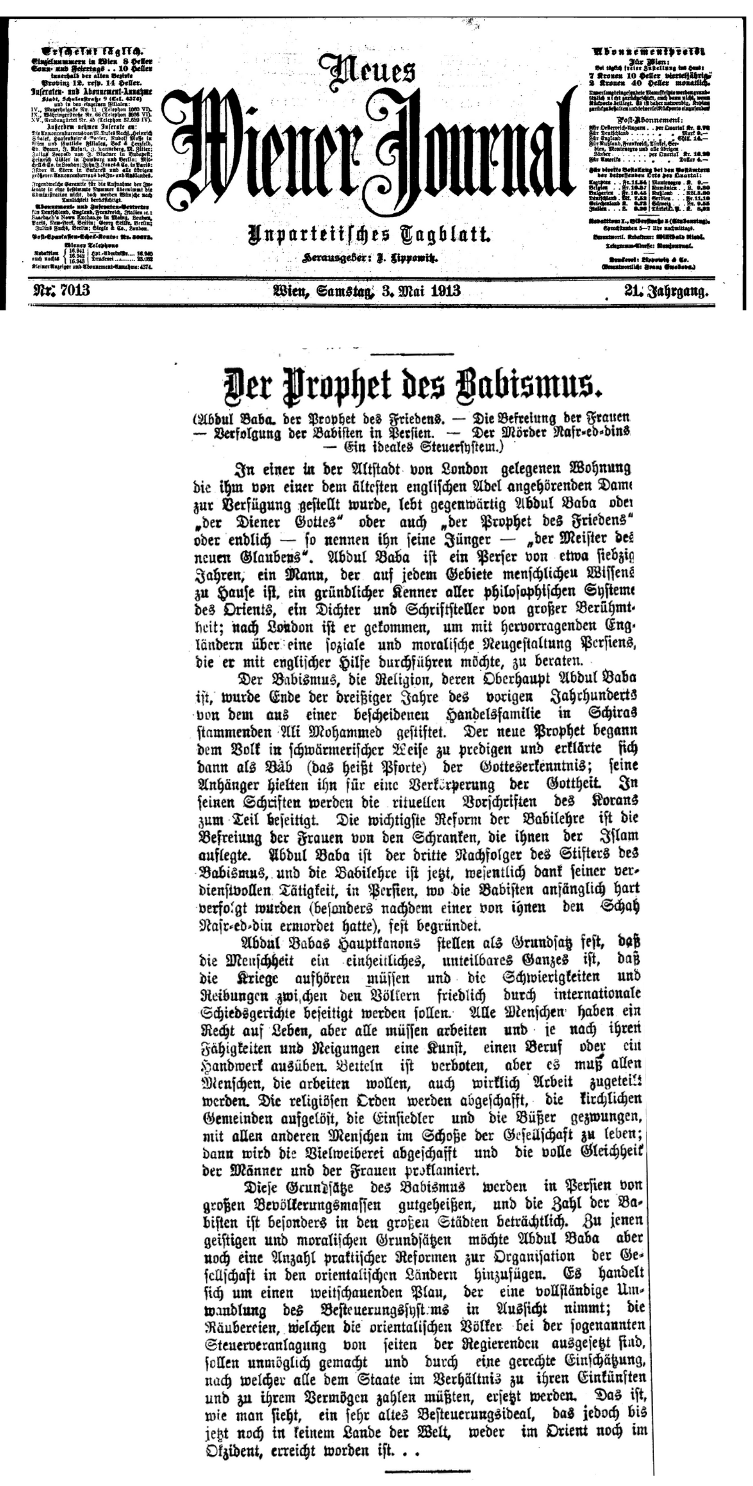 - 18 April 1913: ʻAbdu’l-Bahá leaves Budapest for Vienna, Austria by train